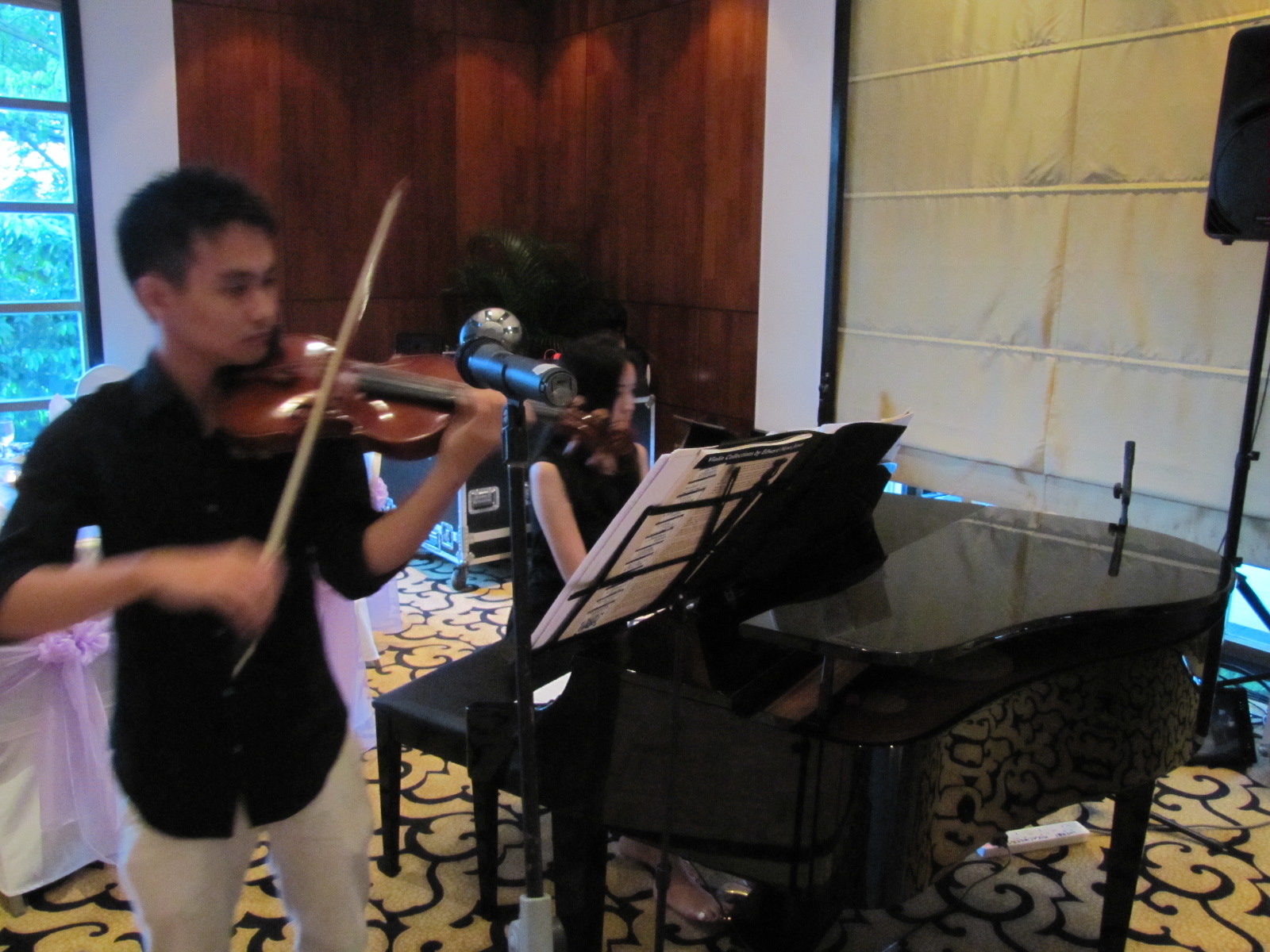 Joanne & Javid wedded on 10 July 2010, at The Sentosa Resort & Spa. Javid, being a great fan of classical music, had a classical duet (violin & piano). The songs selected for the wedding were: