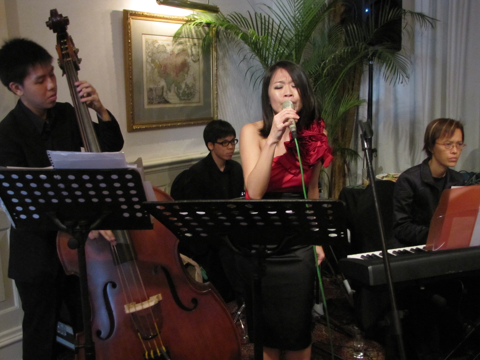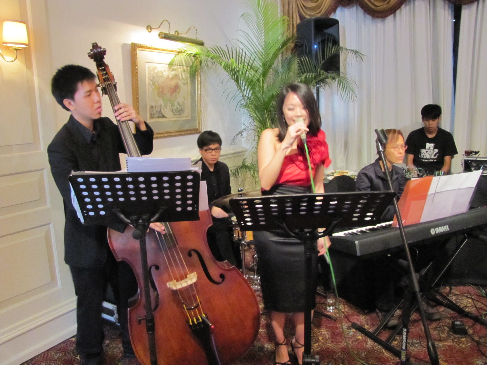 Ashini and Pierre wedded at Raffles Hotel on 17 July 2010. Pierre hails from Italy whereas Ashini is a Singaporean Indian. The couple had Juliet on vocals, Jase on Bass (i love how it rhymes), Mei on keys an Shawn on percussions. They did a lot of jazz numbers.