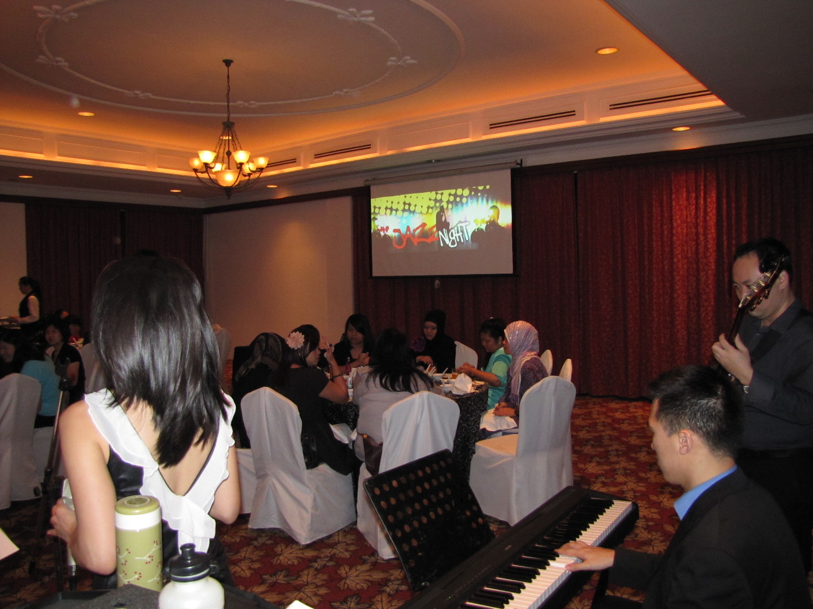 The legal department of HDB celebrated their annual staff party at Orchid Country Club, Emerald Suite. Themed jazz night, the staff enjoyed the soothing jazz music and played games such as battle of the bands and music trivia. Brian Lune was the master of ceremony and Juliet, James & Daniel were part of the jazz band.