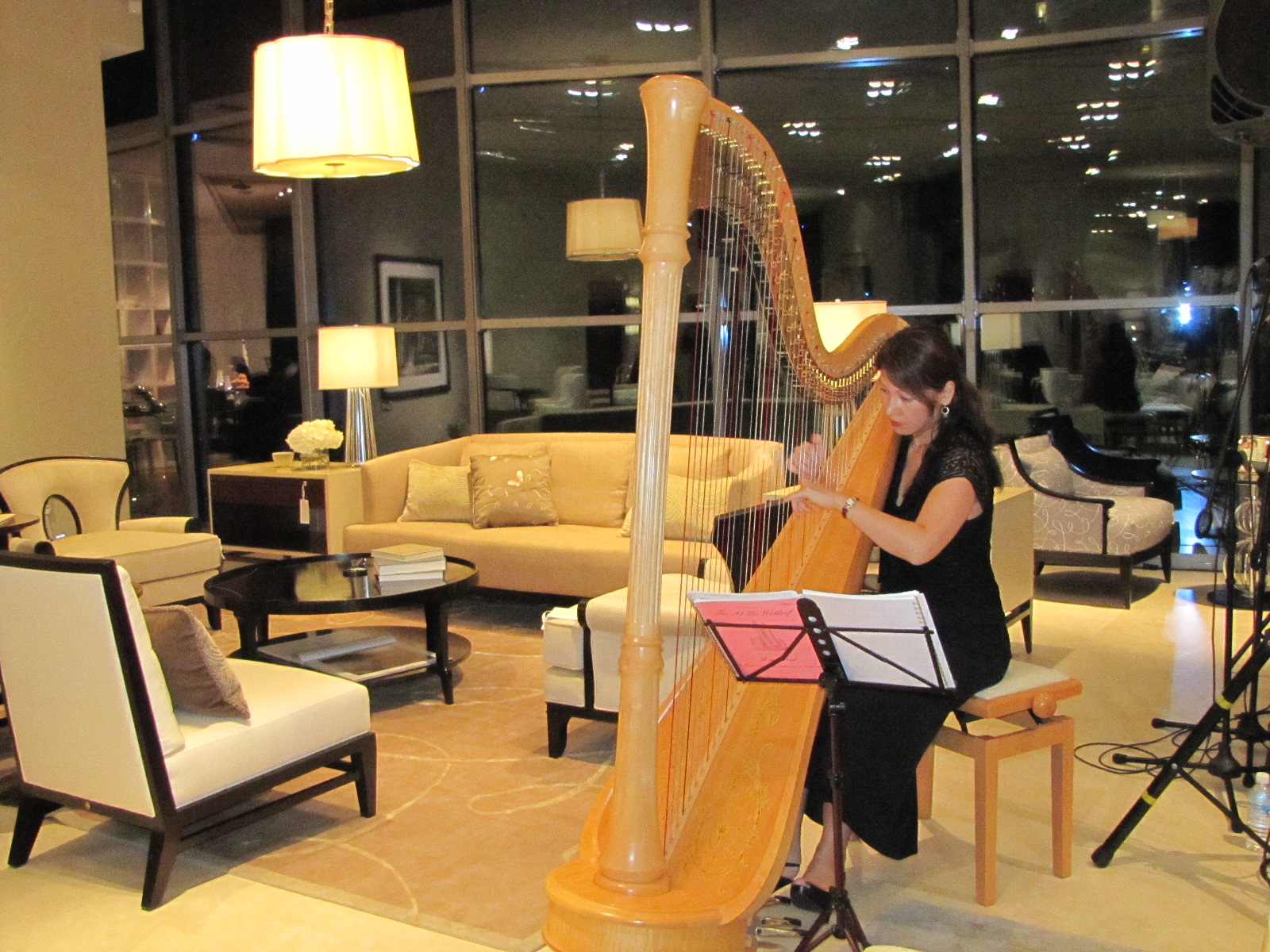 Classical music on a heavenly-sounding instrument, much befitting for a classy ambience in a beautiful adorned showroom.