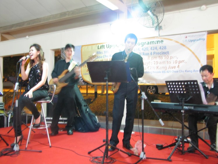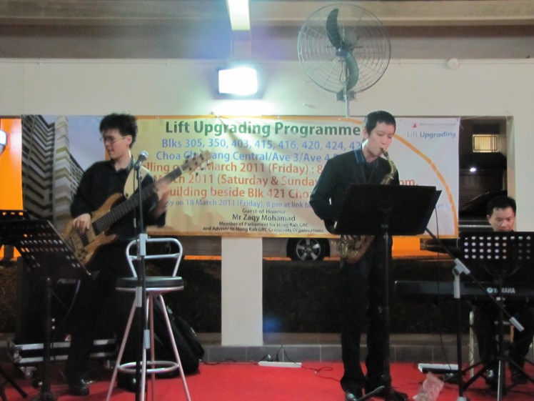 Nice and refreshing touch for the residents in the heartlands, was the inset of a jazz band in the programme. Featuring young and promising star, Meryl Joan Lee, Yi Zhe on bass, Alvin the ah beng on sax and Steven on keys. Mr Zaqy Mohammud was the GOH for the evening and he was frankly one of the GOHs I know that didnt scoot off after 3 bites. He stayed on till the very end and was chatting with Meryl & Yi Zhe about his hectic work life. One loves an MP who can talk to the ground dont ya think.
