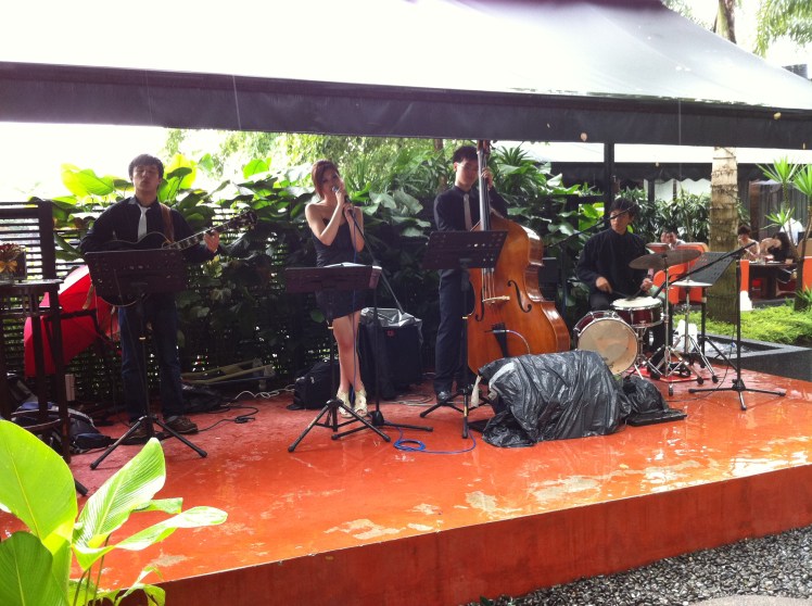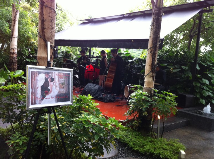 It was a wet Sunday morning on the east coast of Singapore. Although the rain continued to pour onto the enchanting compound of 1-Twenty Six, it hardly dampened the spirit of joy of a pair of newly-weds. As they strode together endearingly into the wedding stage, their guests gazed on as Meryl Joan Lee and her band celebrates the couple’s union with their gift in music.