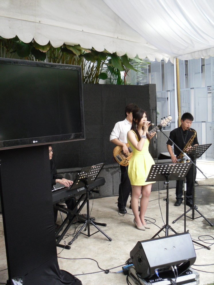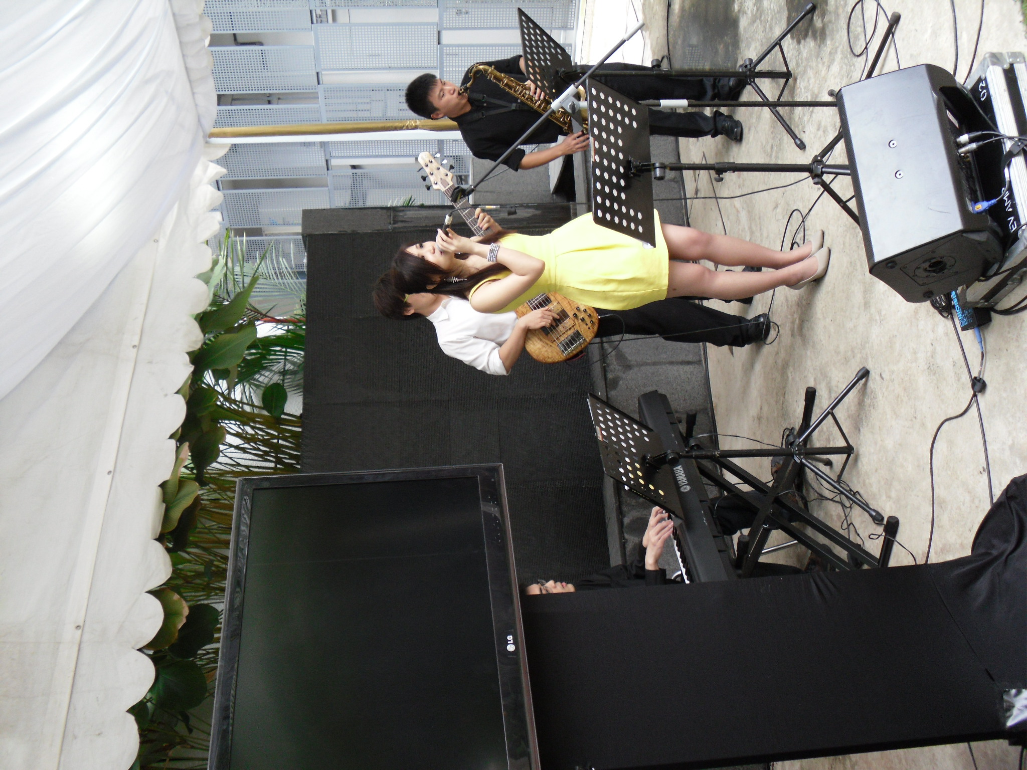 Meryl & her mates were set in a garden atmosphere that is actually at the courtyard of Mountbatten Square. Dressed in resplendent yellow, the jazzette belted out tunes for an early hour hour at 5pm.