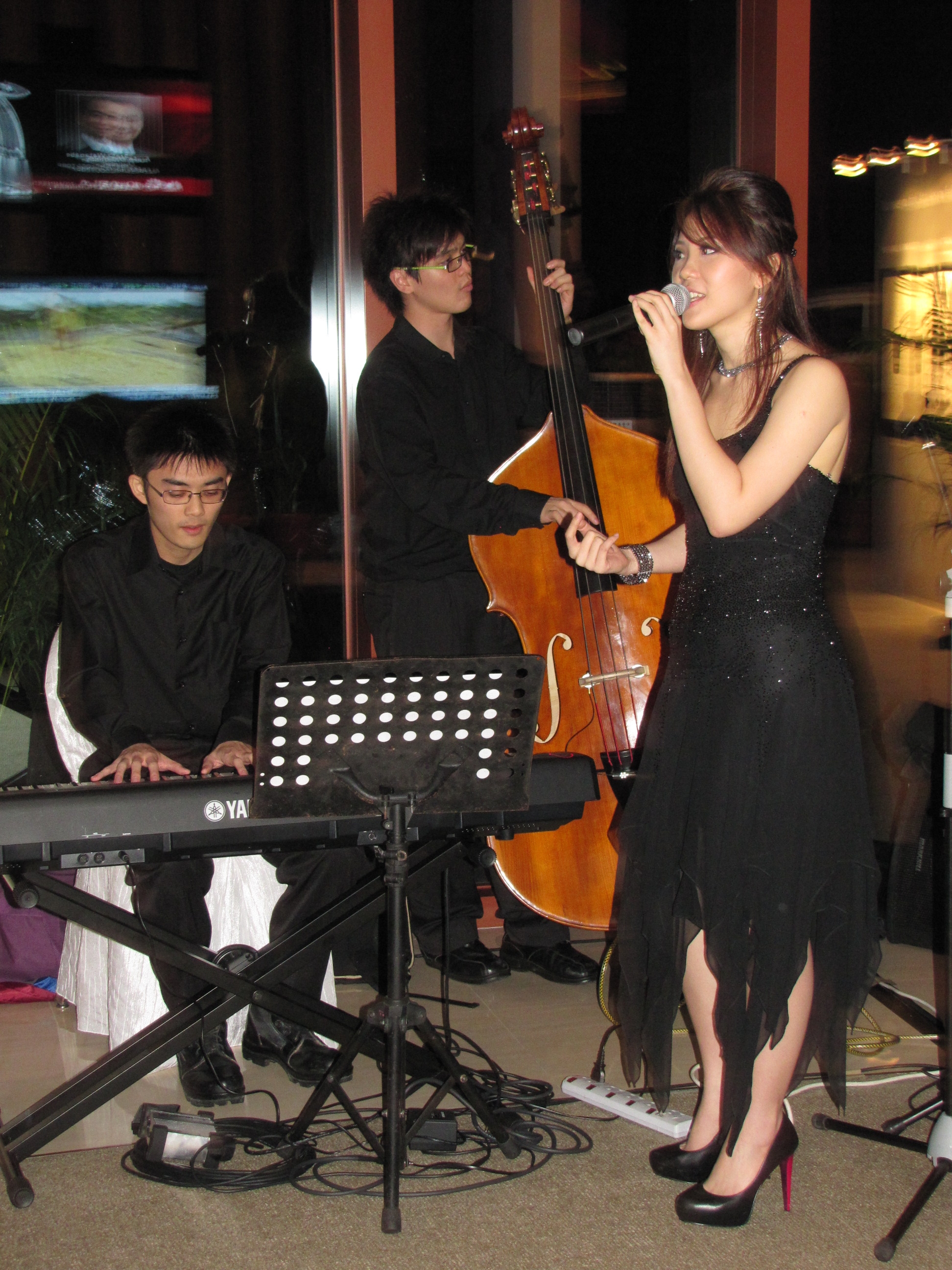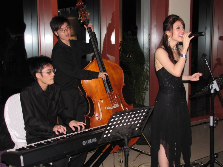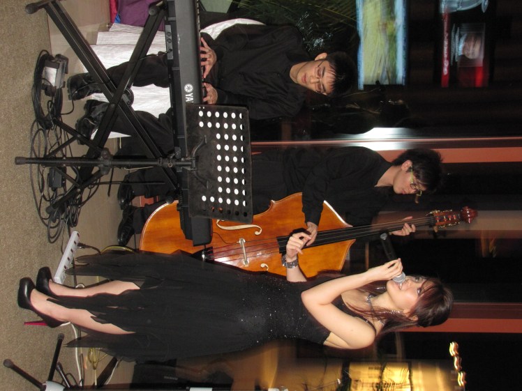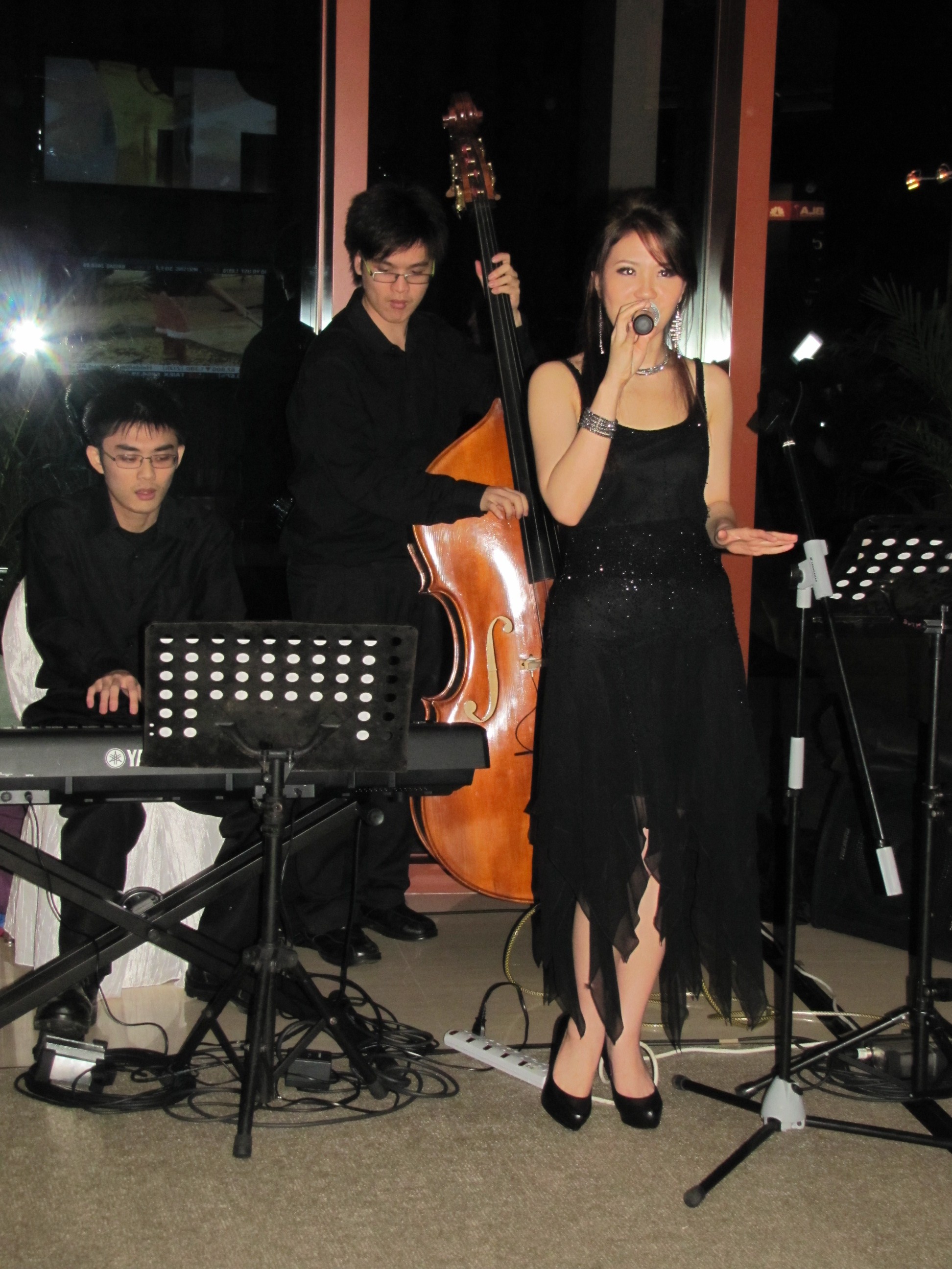 Meryl, Yi Zhe and Sooty, performing upbeat jazz and swing, helped the after dinner crowd ease into a lounge mode, and the band had them linger till near midnight.