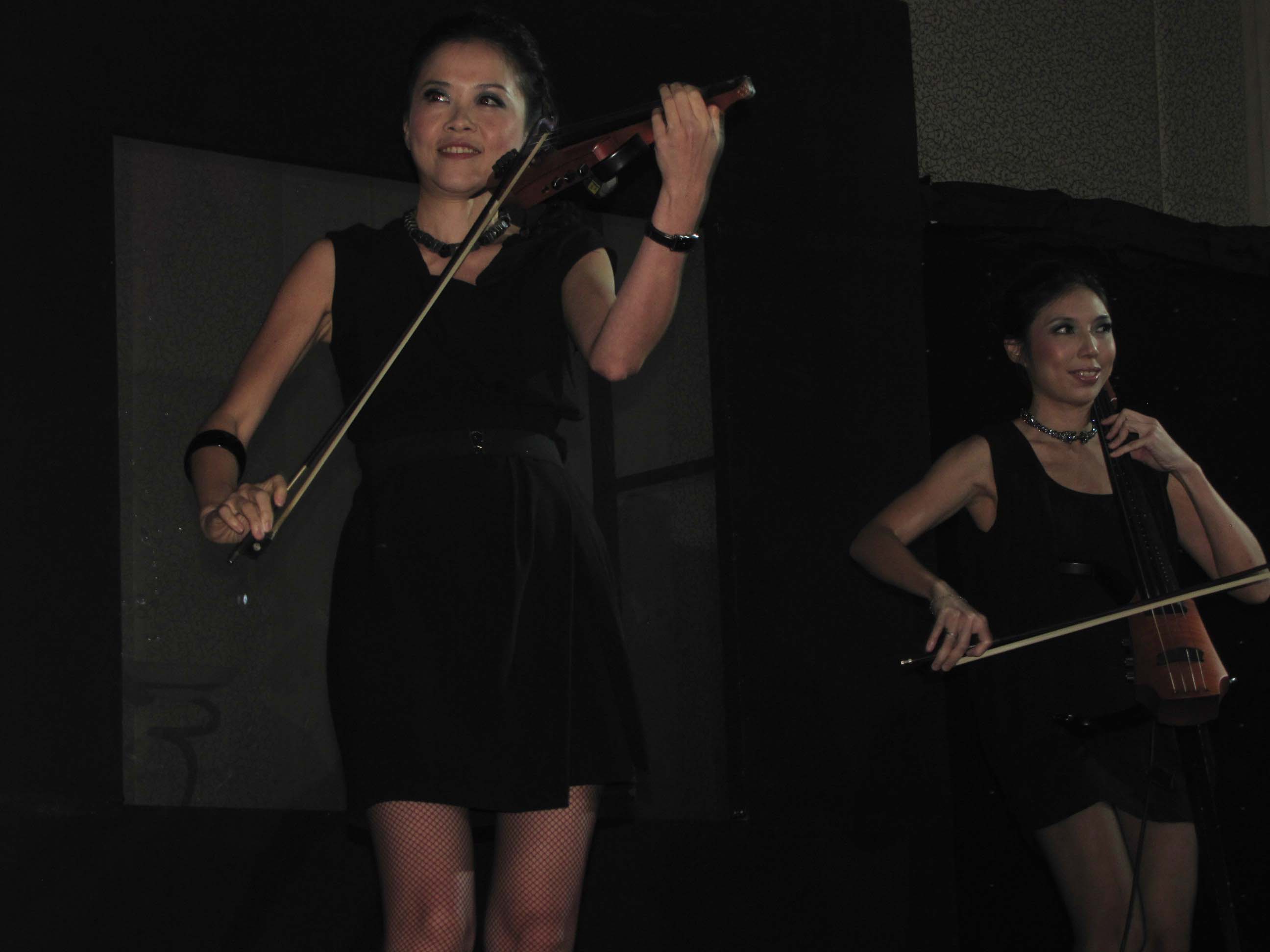 San Nikkis burst in with song and energy during the Sam Woh D&D organised by Inspiration Ideas at Grand Corpthorne Waterfront, 30 Dece 2011. Strolling in with their arresting tune on the violins and cello, the audience sat enraptured in their seats.