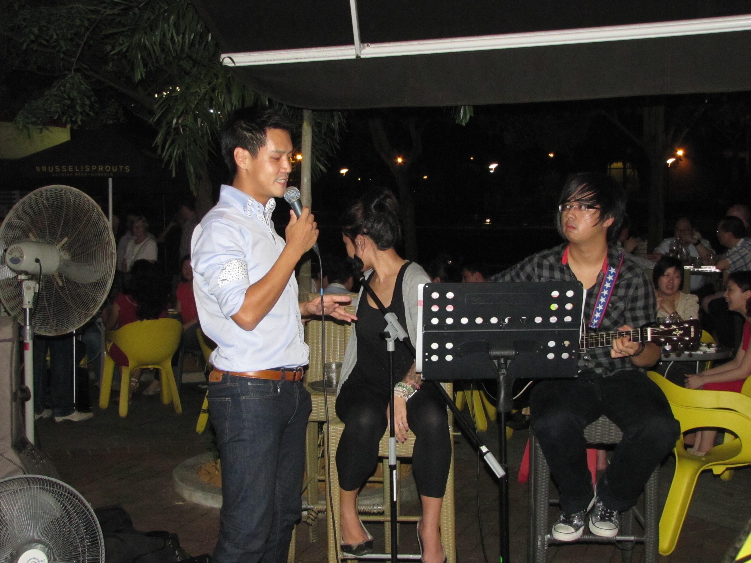 Alicia and her guitarist came prepared while we set up a simple system for them. The guests at Brussel Sprouts, including friends of the couple, had no idea that this duo was meant to sing for that one table only.