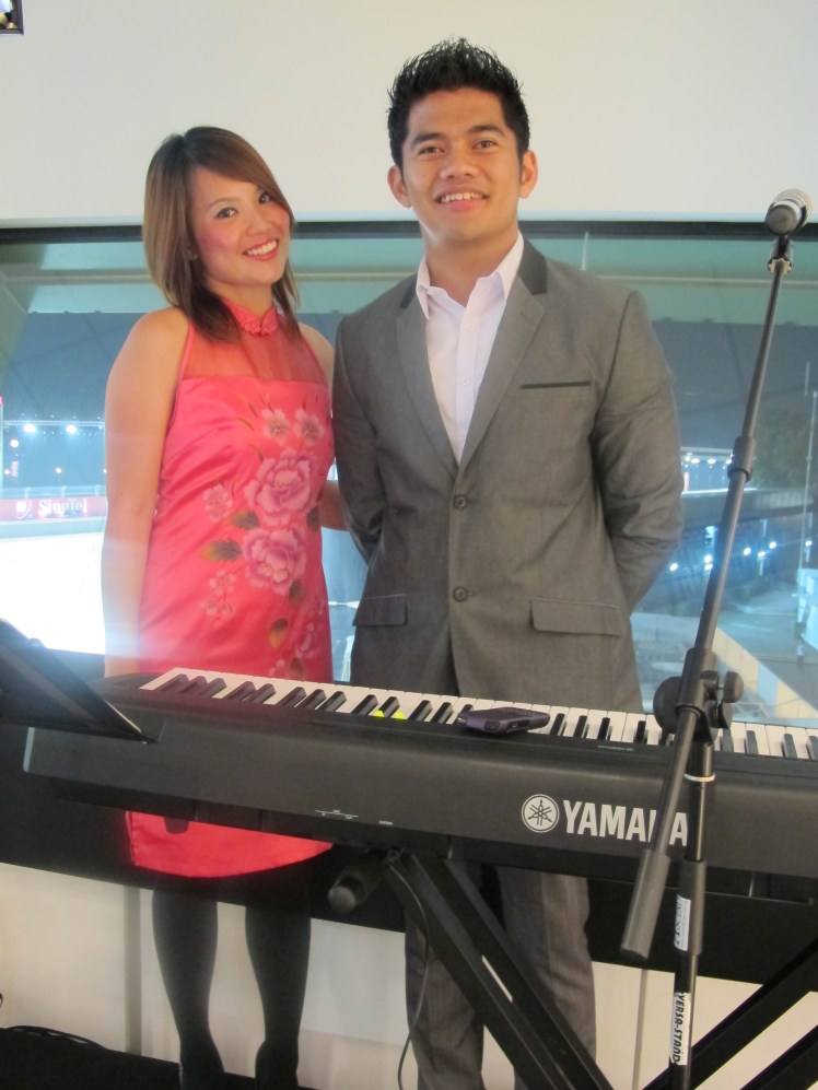 Their second and last performance slot was held at Temamsek Suite which have one of the best views in the F1 Pit Building. It also houses the most important guests, and it was our honor to rub shoulders with all the most familiar and important persons in Singapore all at once. Shili & Adi took the opportunity to share with all the ministers, including our Prime Minister and our President, with their Rojak Medley that includes all our Singaporean folk songs.