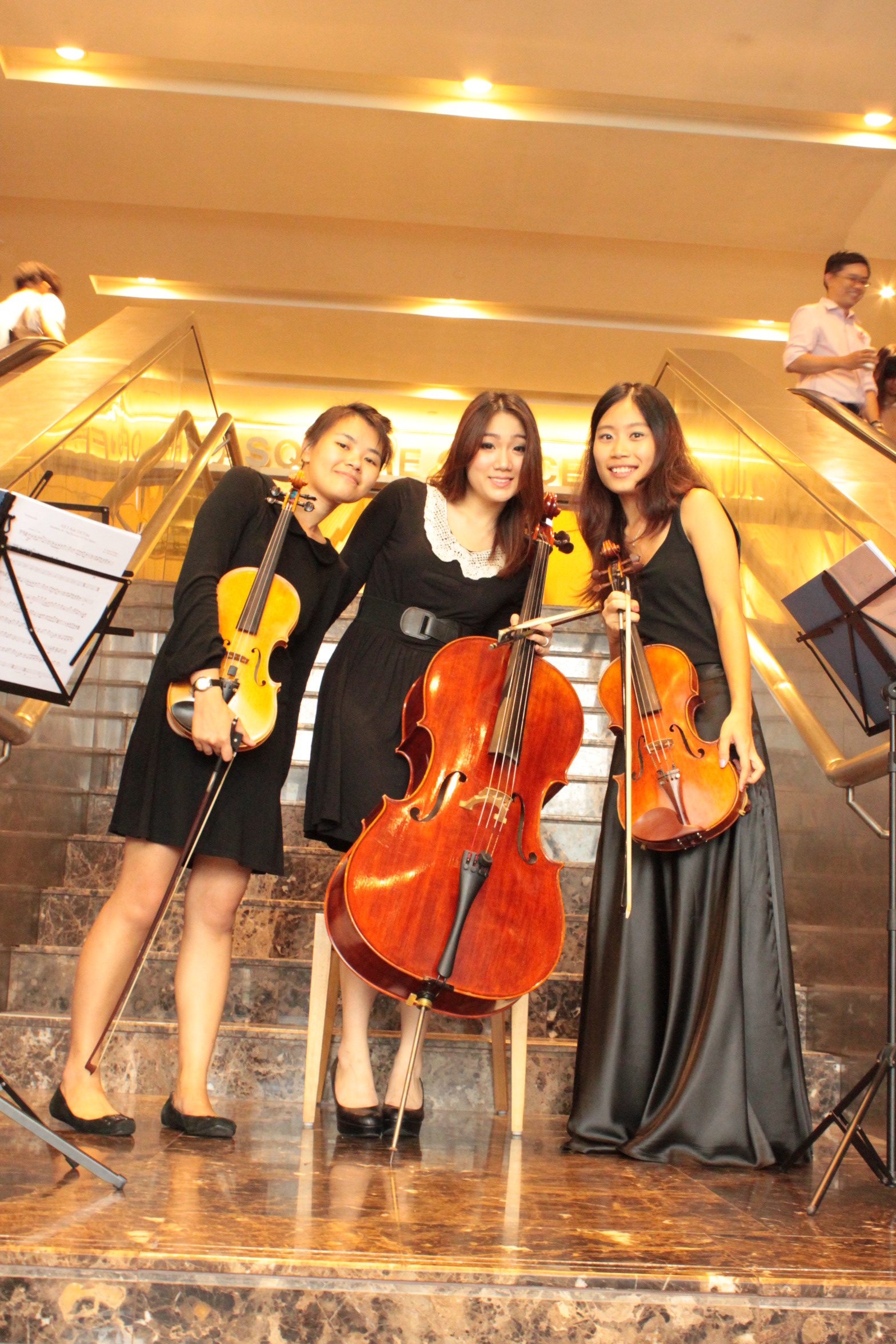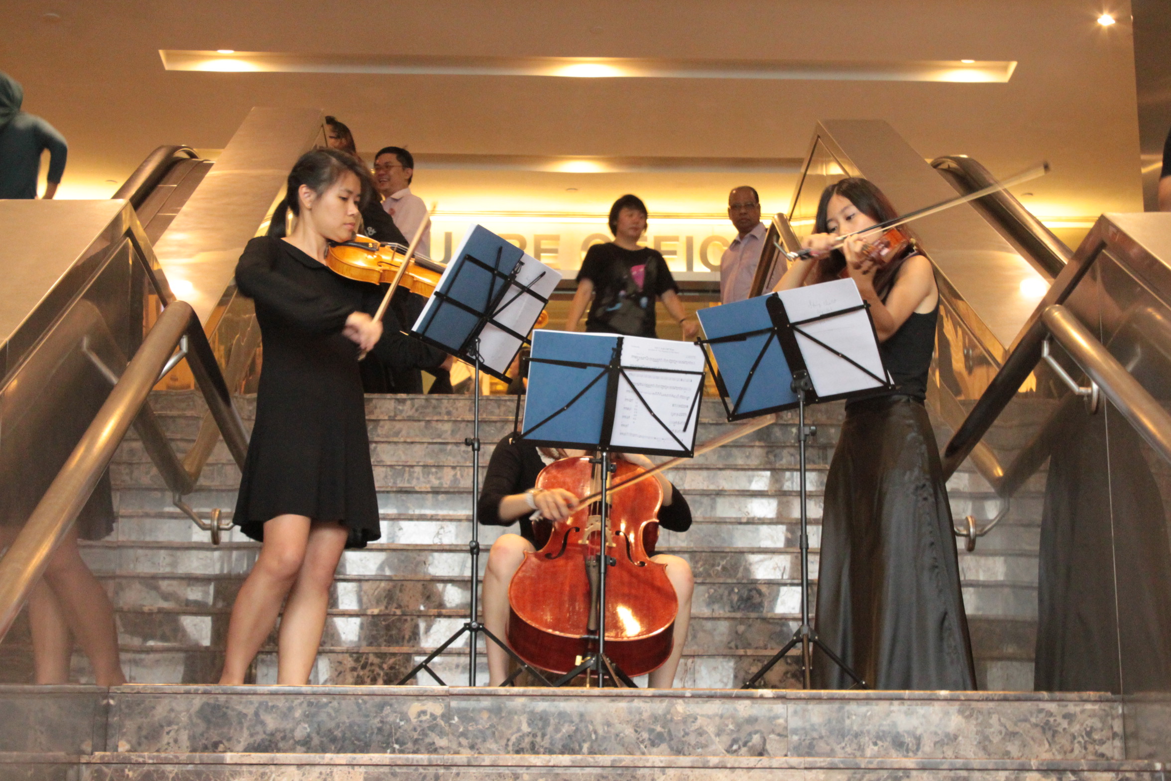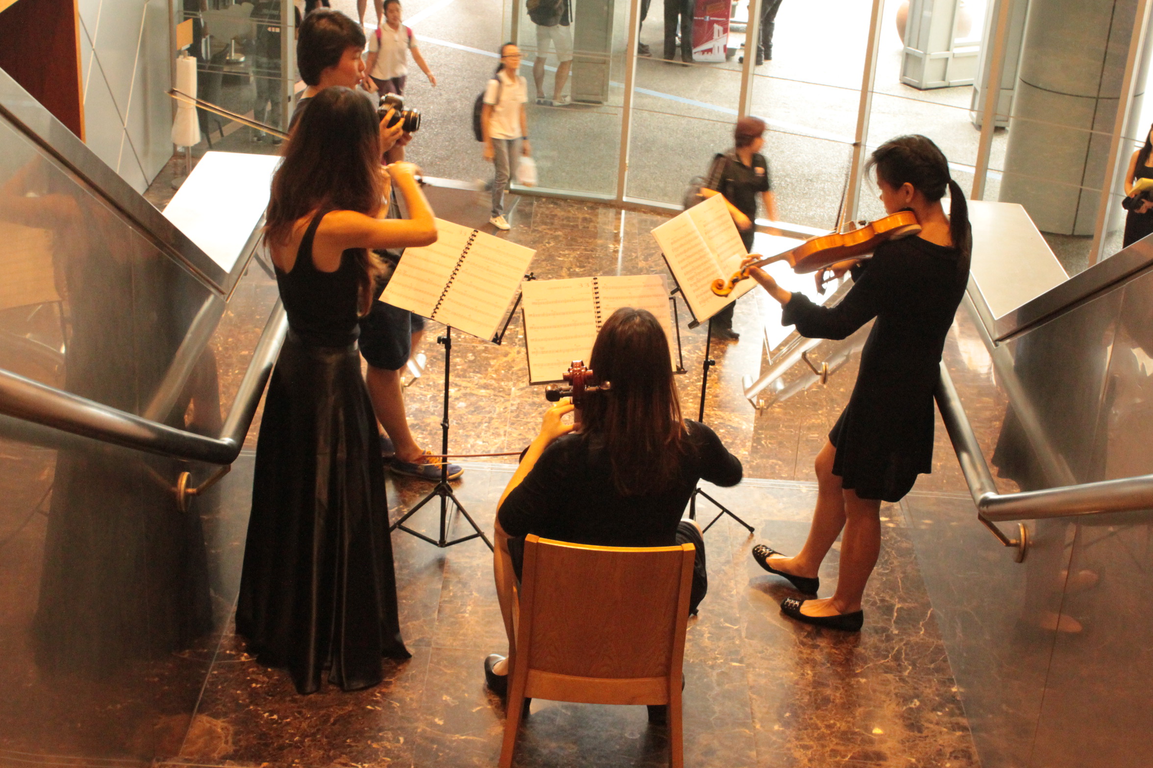 This October, Manhattan Fish Market strikes again! This time with a ‘string mob’ to greet their new customers at United Square where they have opened a new outlet. Formed by three members of Quartetto, a Singaporean ladies’ string quartet, the three ladies begun their stint at 8.30am in the morning as Manhattan Fish Market waiters & marketing personnel turns the usually quiet walkway and escalator towards the office into a refreshing path filled with refreshing classical and jazz music…