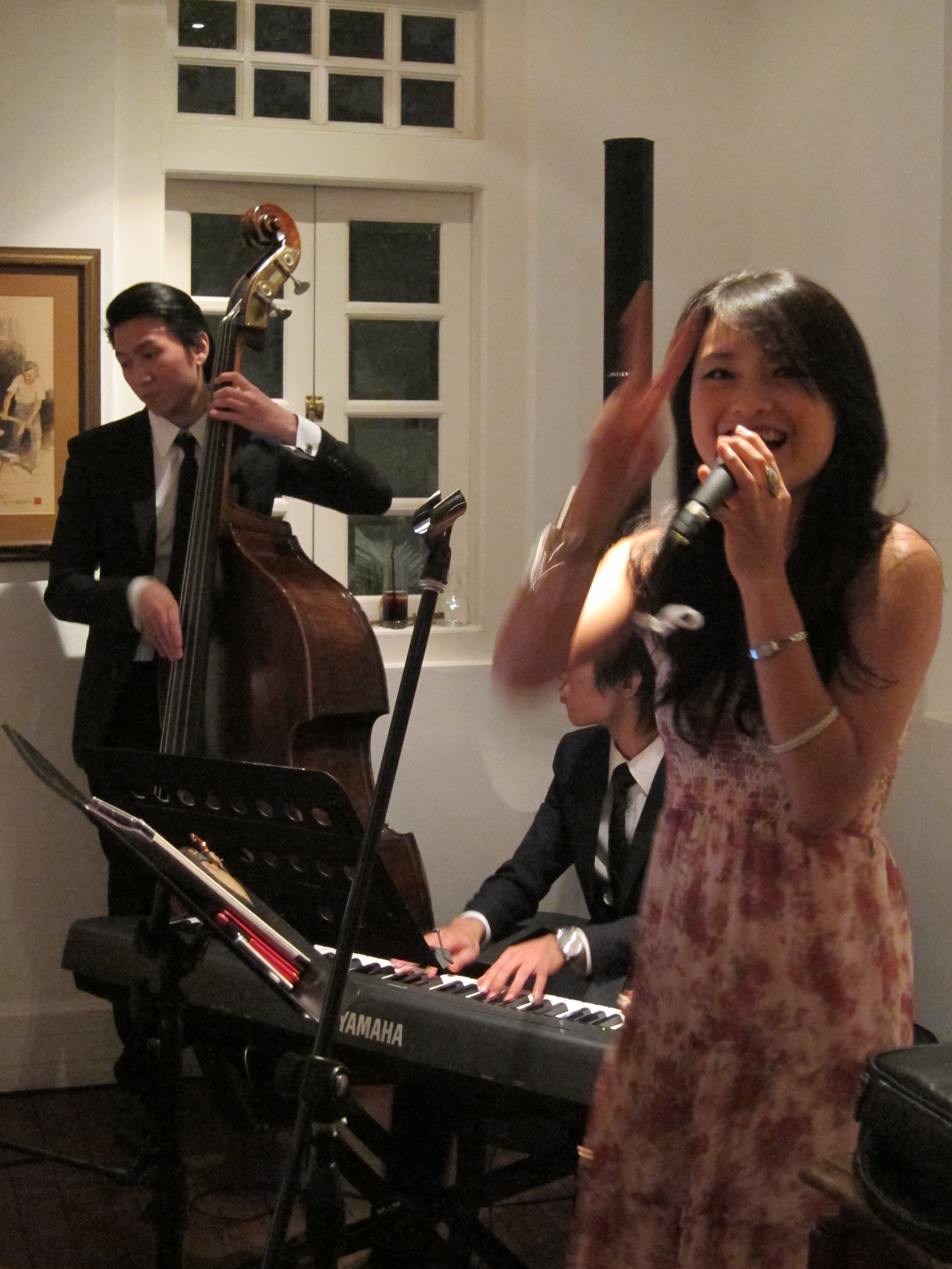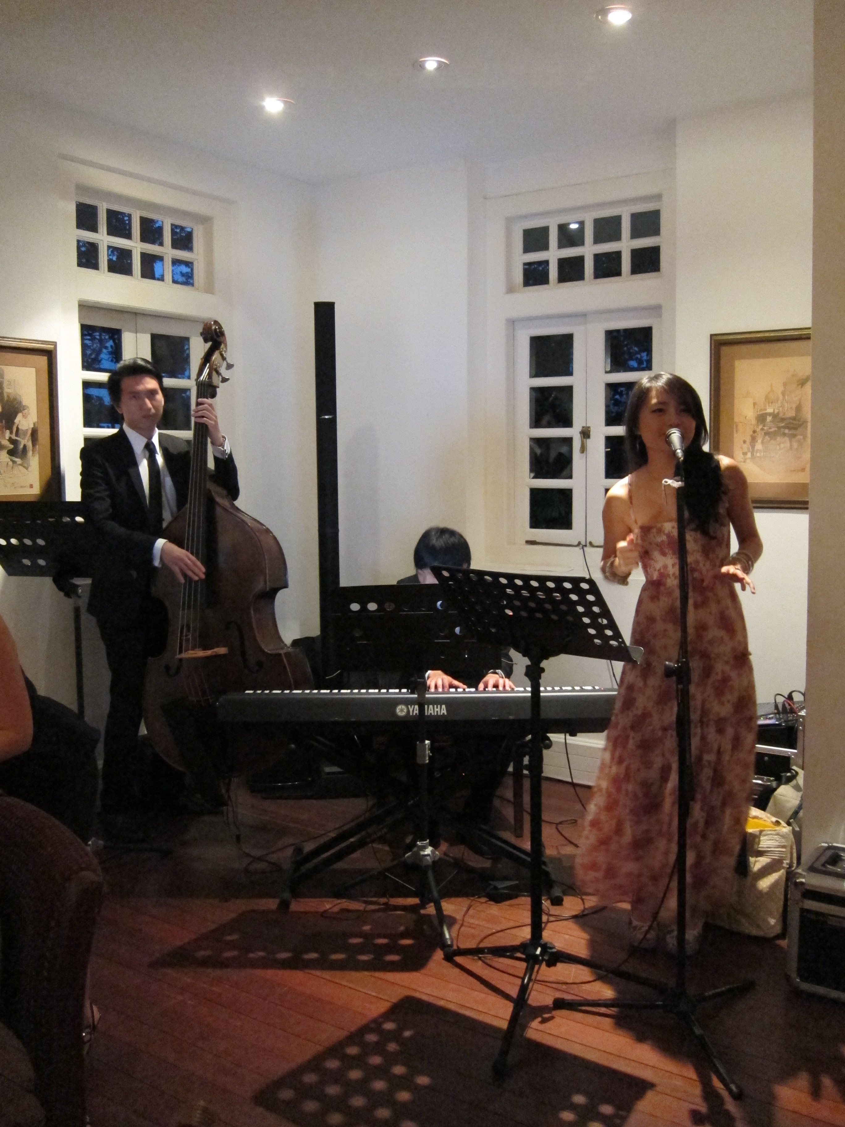 The ending touch is definitely this: a pianist, a double bassist and an elegant singer with a sense of humour. Wait, maybe not the sense of humour, but thats the kind of vibe Charlene brings to her gigs. Cheerful and always ready to inject life. Titus and Sikai were perfectly suited up accompanying musicians, who were probably suspects for being undercover bodyguards.