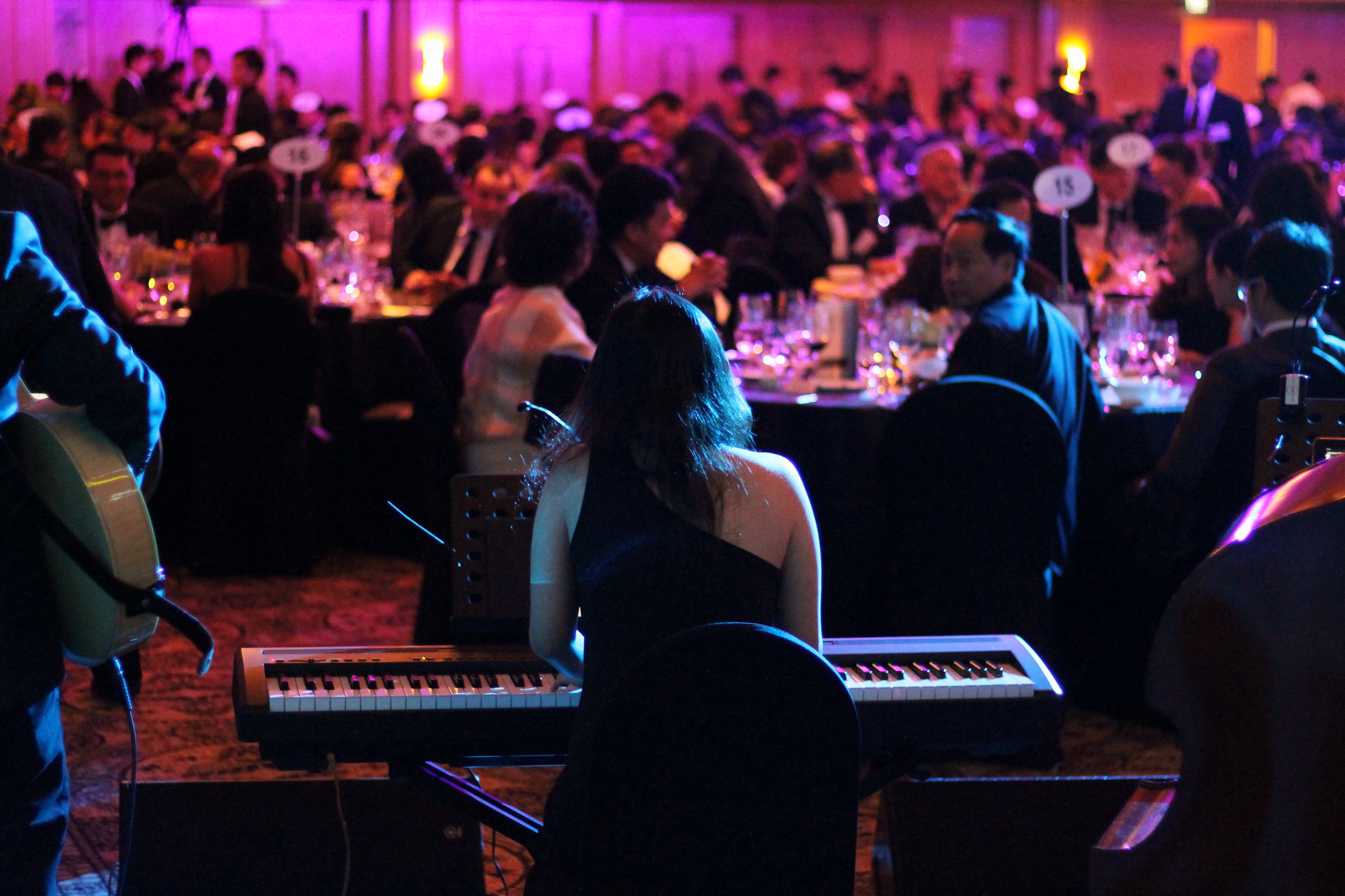 A great night at The Ritz Carlton hotel grand ballroom. It was a night to celebrate the achievements of entrepreneur in Singapore, after years of hard work a night to recognize the efforts of these great entrepreneurs. Nothing beats having great music in a night of celebration. On vocals and piano is Ywenna, along side her is Kachi on guitar, Felix on double bass and Steven Rufus on Saxophone.