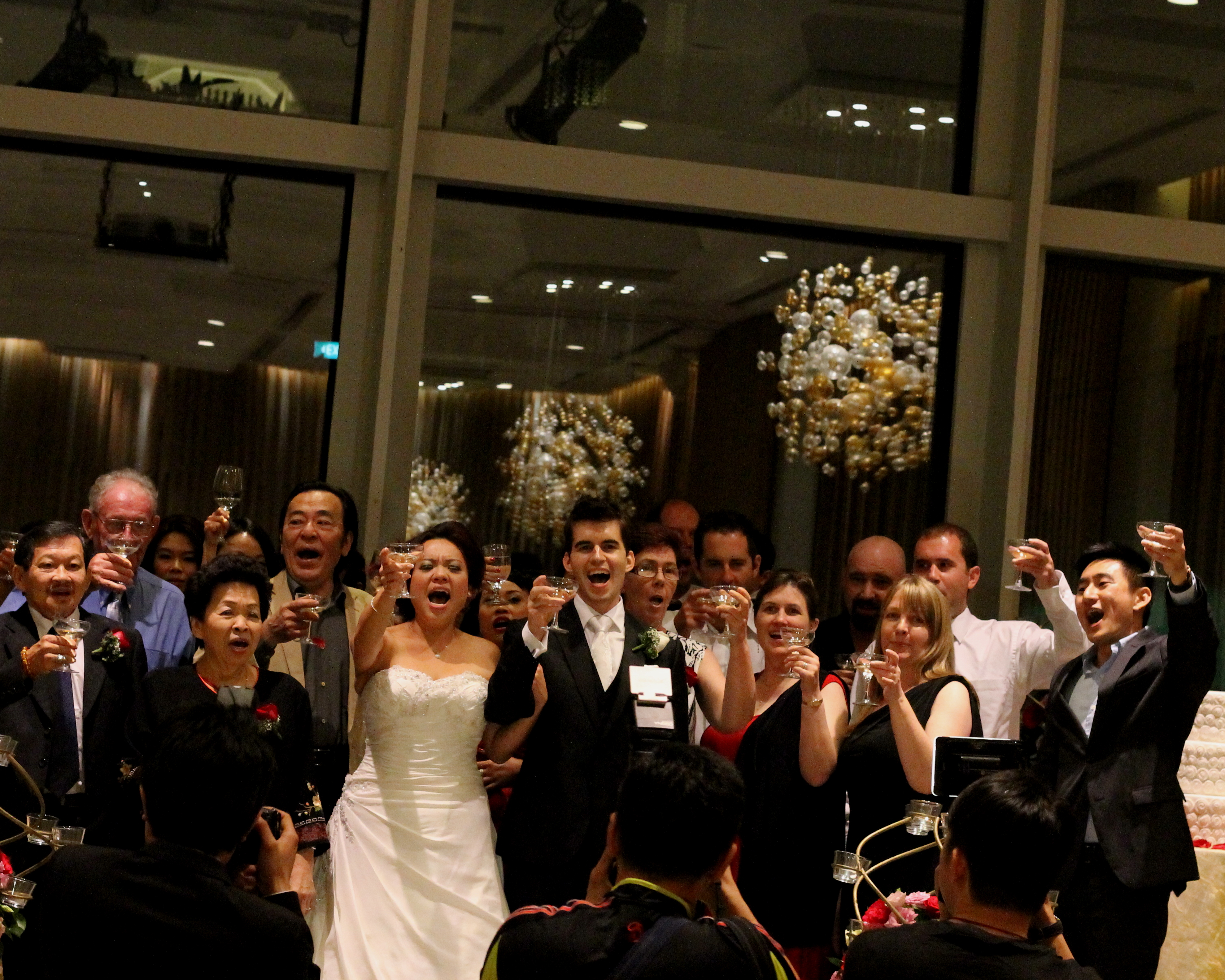 It was a great evening at the wedding dinner of Simon & Mui, where friends from all over the world come together to celebrate the union of the two. Singapore Char Siew Baos played melodies of the heart that bring guests into the river of love. Jeremy Lee hosting at the wedding dinner with DJ BUZZ spinning at the After Party.