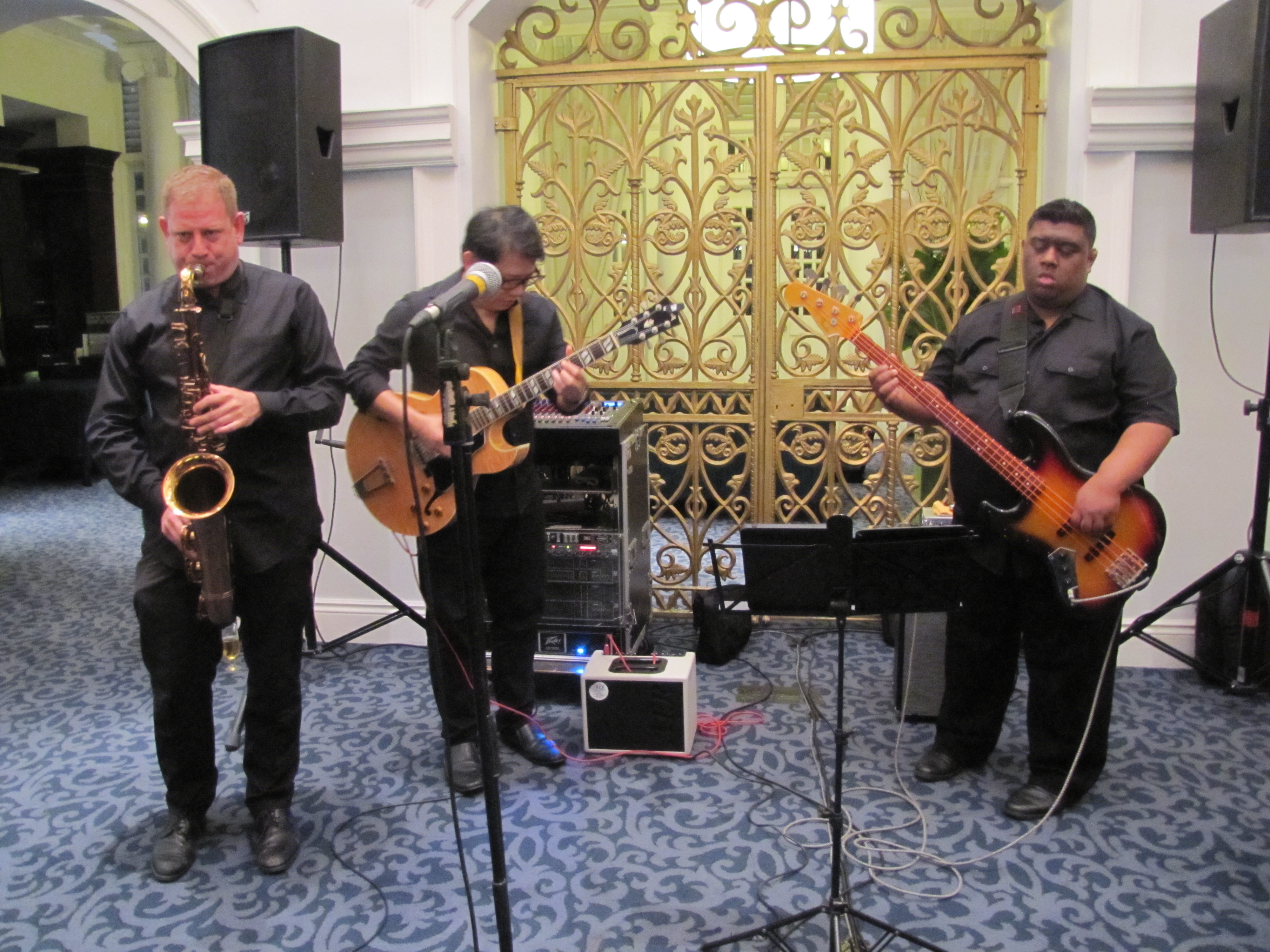 Cotty Vivant Marchisio & Lauzeral’s Cocktail Party Posted on January 22, 2014 by redkitemusic On 16 January 2014, Cotty Vivant Marchisio & Lauzeral (CVML) had a cocktail party at Singapore Cricket Club’s Padang Restaurant. Blue Monks (Regi, Bani & Corey) were invited to play some jazz to liven up the ambience. Share this: Click to share on Facebook (Opens in new window) Facebook Click to share on X (Opens in new window) X Like Loading...